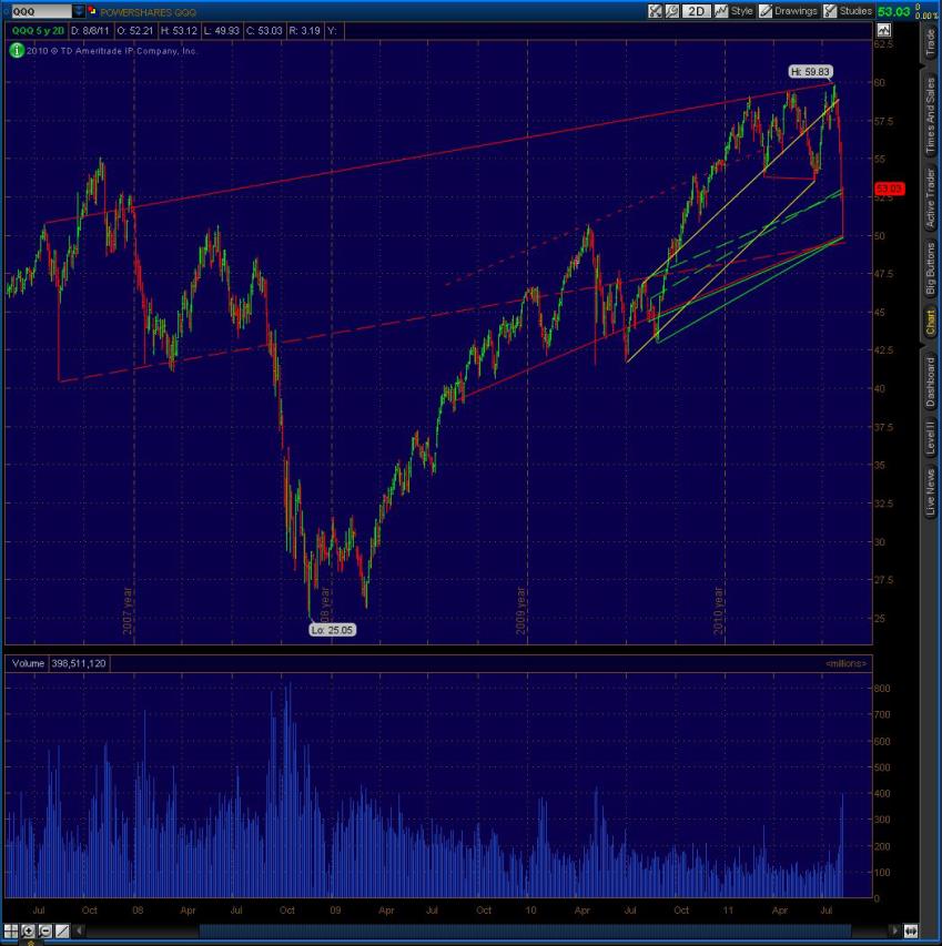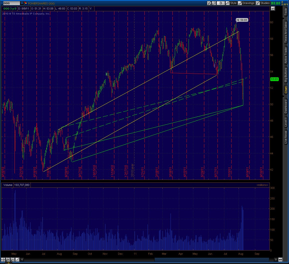 SUPPLEMENTAL UPDATE TUE 8:30AM EST 10 August 2011: Regarding short-term downside trend. See the QEV Wave Pattern Signal Guide and significant EBDs (EchoBackDates) and ETDs (EchoTradeDates) by clicking on the EASYGUIDECHART Button in header above.